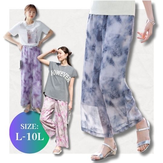 パンツ 大きいサイズ タイダイ柄ジョーゼットイージーパンツ レディース 春夏秋 体型カバー カジュアル トレンド 30代 40代 50代