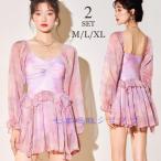 水着 夏 レディース ワンピース 春 体型カバー タイダイ フリル ワンピース 春水着 M L 2L 20代 30代 可愛い シアー水着