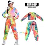 ダンス衣装 ヒップホップ セットアップ タイダイ柄 ペイント模様 派手 レディース 大人 ガールズ HIPHOP トップス パンツ K-POP 韓国