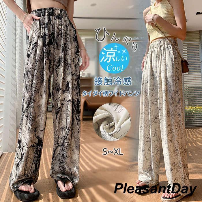 【期間限定10%OFF】ワイドパンツ レディース パンツ ストレートパンツ ボトムス ウエストゴム 春 夏 タイダイ柄 花柄 ペイント風 涼しい 冷感 ひんやり リラックス 長ズボン