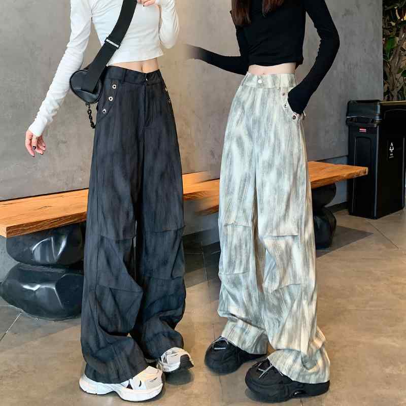 春 コーデ レディース ファッション オシャレ アイテム カワイイ コーデ シンプル きれい ナチュラル 上品カジュアル 用 アメリカン ブラック タイダイ柄 ワークウェア ワイド レッグ パンツ レディース 春 ハイウエスト スリム ドレープ ストレート カジュアル