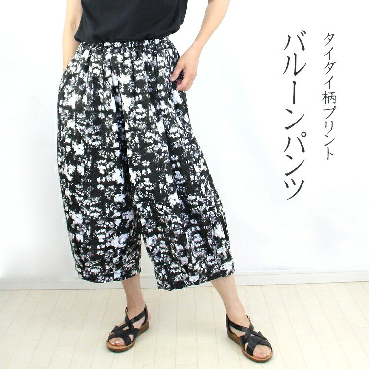 【送料無料】タイダイ柄プリント バルーンパンツ コットン 綿100% ウエストゴム モノトーン 白黒 レディース