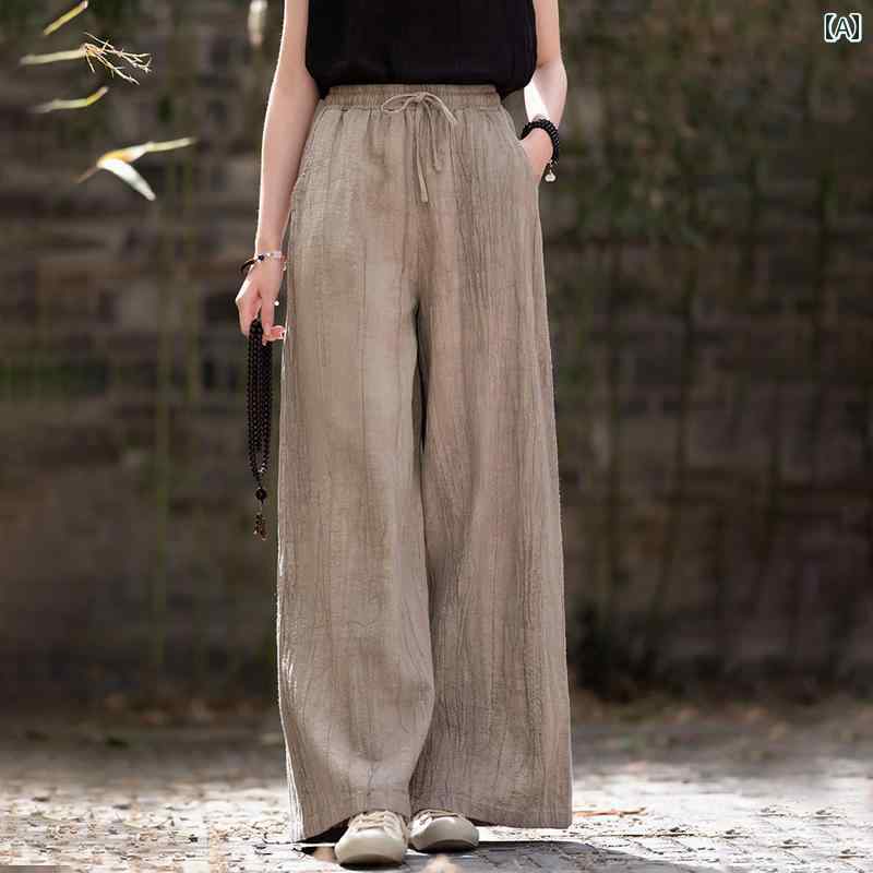 カジュアル パンツ レトロ プリーツ加工 タイダイ ワイドレッグ パンツ ハイウエスト スリム ドレープ 汎性 ストレート ロング リネン ウエストゴム