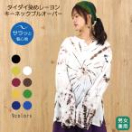 タイダイ染めレーヨンキーネックプルオーバー トップス 長袖 カットソー 絞り染め 全9色