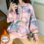 パーカー スウェット レディース マーブル タイダイ柄 裏起毛 トップス トレーナー プルオーバー 大きいサイズ 秋 冬服 長袖 V系 地雷系