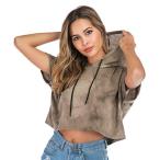 パーカー 半袖 プルオーバー レディース ショート丈 フード 紐付き トップス タイダイ ダンス ヒップホップ S M L XL