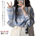 ボーダー カットソー トップス レディース 春 カジュアル ゆったり Tシャツ プルオーバー 長袖 クルーネック 着こなし タイダイ 大きいサイズ 韓