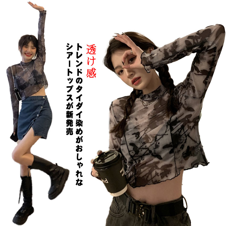 Tシャツ レディース 透け感 長袖 トップス ロンt シースルー シアートップス 重ね着 レイヤード uvカット プルオーバー 日除け対策 紫外線対策 冷房対策 タイダイ染 原宿系 ダンス衣装 体型カバー ビッグシャツ 韓国 ファッション 春夏