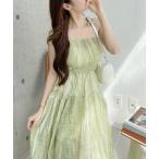 ワンピース ショルダー リボン シャーリング タイダイ フレアワンピース