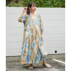 ワンピース タイダイ配色ドロストギャザーロングワンピース