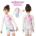 女の子 キッズ 水着 子供用 ホワイト ワンピース オールインワン こども ベビー水着 ブルー ピンク タイダイ染め ラグラン袖 長袖 ラッシュガード UVカット みず