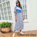 ワンピース 半袖 レディース 女性用 ロング マキシ丈 タイダイ風 絞り染め風 ボーダー Vネック フリル袖 おしゃれ かわいい カジュアル デイリー