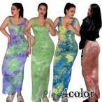 キャミソールワンピース レディース 婦人服 ノースリーブ マキシ丈 ロング丈 タイダイ柄 絞り染め風 おしゃれ かわいい リゾート ビーチファッション