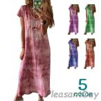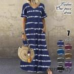 ワンピース レディース Aライン ロング丈 半袖 Vネック タイダイ染め風 絞り染め風 カジュアル ラフ おしゃれ かわいい