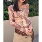 tシャツ タイダイ マーブルプリント シアー長袖トップス /韓国 透け感レイヤード(CZ) レディース