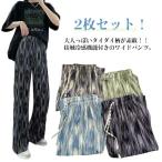 接触冷感 タイダイ柄 ワイドパンツ さらさら 柄パンツ 2枚セット! 薄手 総柄 涼感 吸汗速乾 レディース 春夏 涼しい ワイド 冷感 ストレートパ