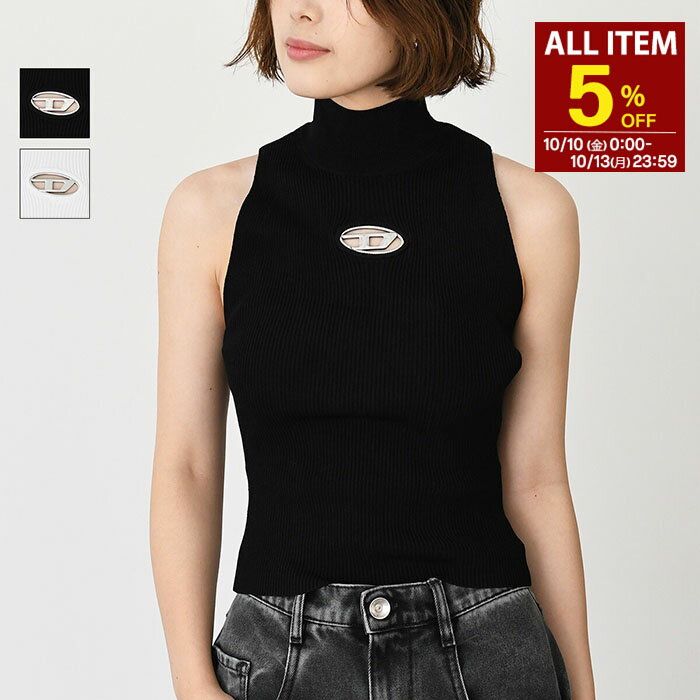 【5%OFFクーポン】DIESEL ディーゼル トップス M-ONERVAX-TOP ノースリーブトップ A13020 0DLAX レディース ホワイト ブラック リブニット ハイネック スリムフィット_d sstmcp