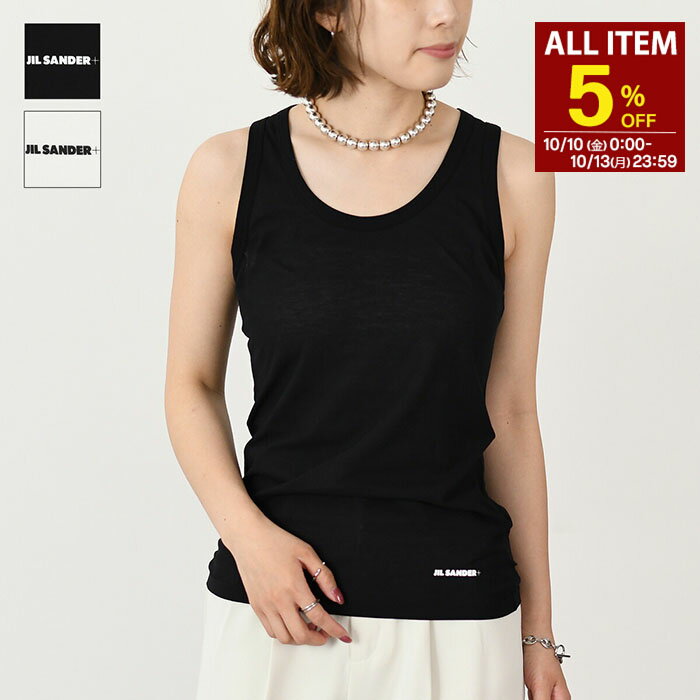 【5%OFFクーポン】JILSANDER ジルサンダー トップス コットン タンクトップ J40NL0114 J45031 レディース ブラック ホワイト ノースリーブ ロゴ 無地 ワンポイント 春 夏 sstmcp