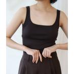 タンクトップ ノースリーブ Uネックリブニットトップ レディース
