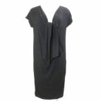 ダナキャランニューヨーク DKNY 美品 コクーンカットソーワンピース ひざ丈 リボンタイ風 フレンチスリーブ レーヨン S 黒 ブラック /X