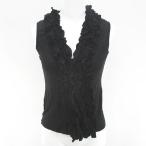 ダナキャランニューヨーク DKNY ノースリーブ カットソー P 黒系 ブラック フリル 無地 レディース