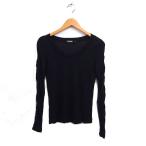 ダナキャランニューヨーク DKNY ギャザースリーブ カットソー Tシャツ 長袖 オーバルネック 無地 S ブラック 黒 /FT14 レディース