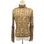 ダナキャランニューヨーク DKNY ブラウス カットソー 長袖 ハイネック 総柄 シースルー 4 L 茶 /SY21 ■ECA001 レディース