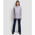 ダナキャランニューヨーク カットソー トップス レディース Women's Cropped Long Sleeve Button Front Shirt Chambray