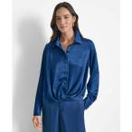 ダナ キャラン ニューヨーク カットソー トップス レディース Women's Long-Sleeve Twist-Front Blouse Cadet Blue