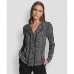 ダナ キャラン ニューヨーク レディース カットソー トップス Women's Printed Button-Front Long-Sleeve Shirt Clouded Inkblot
