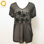 #snc ダナキャランニューヨーク DONNAKARAN NEWYORK DKNY ニット カットソー S 黒 半袖 シースルー パワーネット 花柄 レディース [886790]