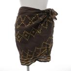 ダナキャランニューヨーク DKNY ラップスカート 巻きスカート 4 麻 リネン ひざ丈 総柄 茶 ブラウン /AE ■GY06 レディース