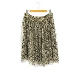 ダナキャランニューヨーク DKNY シルク 総柄シフォンスカート ひざ丈 フレア 4 ブラック ベージュ /DF ■OS レディース