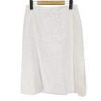 ダナキャランニューヨーク DKNY 膝丈 タイトスカート 4 アイボリー 無地 スリット ストレッチ レディース