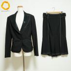 #anc ダナキャラン DONNAKARAN スカートスーツ L 黒 大きいサイズ イタリア製 フレア 異素材 レディース [982305]