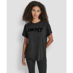ダナ キャラン ニューヨーク Tシャツ トップス レディース Women's Flocked Logo Drop Shoulder T-Shirt Black