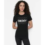 ダナ キャラン ニューヨーク Tシャツ トップス レディース DKNY Women's Sport Glitter Logo Crew Neck T-shirt Black/silver