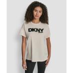 ダナ キャラン ニューヨーク レディース トップス Tシャツ ロゴ DKNY Women's Studded-Logo T-Shirt Travertine