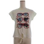 ダナキャランニューヨーク DKNY ノットフロント Tシャツ カットソー フレンチスリーブ プリント オフホワイト XL ■ECT レディース