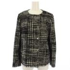 ダナキャランニューヨーク DKNY ノーカラージャケット ジップアップ 千鳥格子柄 4 黒 白 /TK レディース