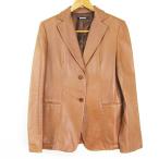 ダナキャランニューヨーク DKNY ラムレザー テーラード 2B ジャケット 4 ブラウン kz13777 レディース