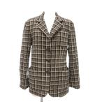 ダナキャランニューヨーク DKNY ノーカラージャケット 12 ツイード フロントフライ 茶 ブラウン /AE ■GY60 レディース