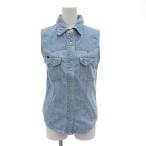 ダナキャランニューヨーク DKNY デニムシャツ 4 ノースリーブ ロゴ 刺繍 ライトインディゴブルー /AE ■GY06 レディース