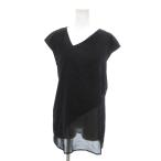 ダナキャランニューヨーク DKNY 美品 Vネックカットソー 黒 ブラック アシンメトリー 裾 レイヤード /NL ■GY58 レディース