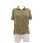 ダナキャランニューヨーク DKNY 半袖ニット 麻 リネン S 茶 ブラウン 襟付き ケーブル編み /ML ■ECA001 レディース