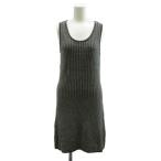 ダナキャランニューヨーク DKNY ニット ワンピース ウール S 黒 ブラック ノースリーブ ストライプ柄 幾何学模様 ひざ上丈
