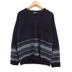 ダナキャランニューヨーク DKNY シャギー ニット セーター 長袖 Vネック ボーダー モヘヤ混 L チャコール /FT レディース