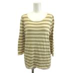 ダナキャランニューヨーク DKNY プルオーバーニット セーター S ベージュ 茶 ブラウン ボーダー柄 ラウンドネック 七分袖 /YU ■ECA004