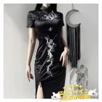 チャイナドレス ミニ パーティードレス チャイナ ドレス ショート ミニドレス チャイナ服 大きいサイズ 半袖 龍(りゅう) 刺繍 コスプレ 衣装 China Dress 1010