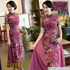 チャイナドレス ワンピース チャイナ服 レディース 半袖 夏服 大きいサイズ カジュアル 着痩せ ロング丈 スリット ヴィンテージ ドレス